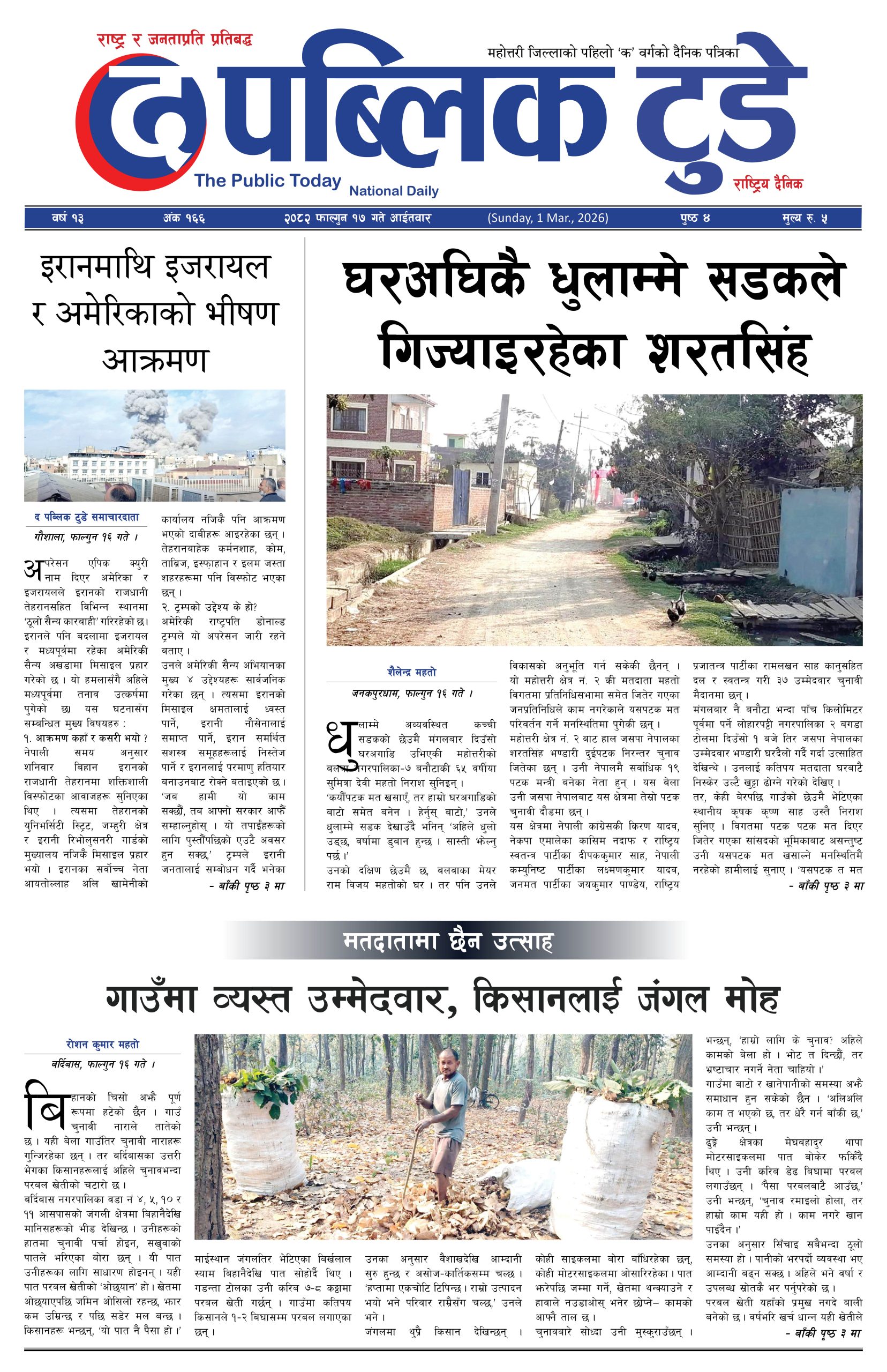 कुनै सल्लाह, सुझाव वा प्रतिकृयाको लागि publictodayonline@gmail.com मा इमेल पठाउन सक्नुहुन्छ ।