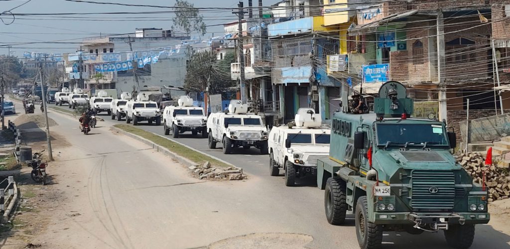 अत्याधुनिक सैनिक सवारी साधनहरू प्रयोग गरी मतदान स्थलहरूमा एकैसाथ सुरक्षा गस्ती तथा निगरानी तीव्र बनाएको छ ।