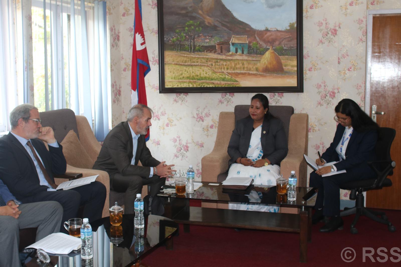 कृषि तथा पशुपन्छी विकास र वन तथा वातावरणमन्त्री गीता चौधरीसँग नेपालका लागि एसियाली विकास बैंक (एडिबी) का देशीय निर्देशक अर्नाउड काउचोइसले भेटवार्ता गरिएको छ । कृषि मन्त्रालयमा भएको भेटमा उहाँहरूबीच कृषि क्षेत्रको विकास, लगानी विस्तार, सहकार्य सुदृढ गर्नेलगायत विषयमा छलफल भएको मन्त्री चौधरीको सचिवालयले जनाएको छ ।