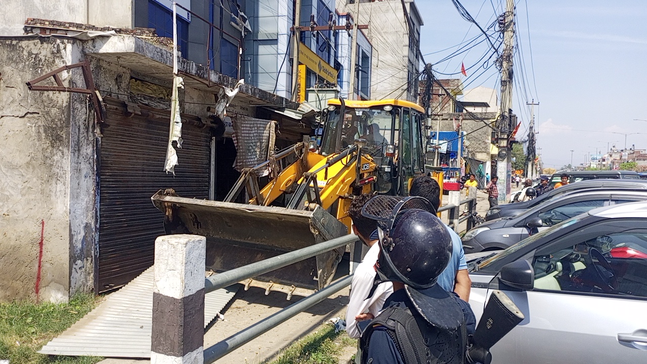 नेपालगञ्जमा सडक क्षेत्रका अवैध संरचना हटाइँदै